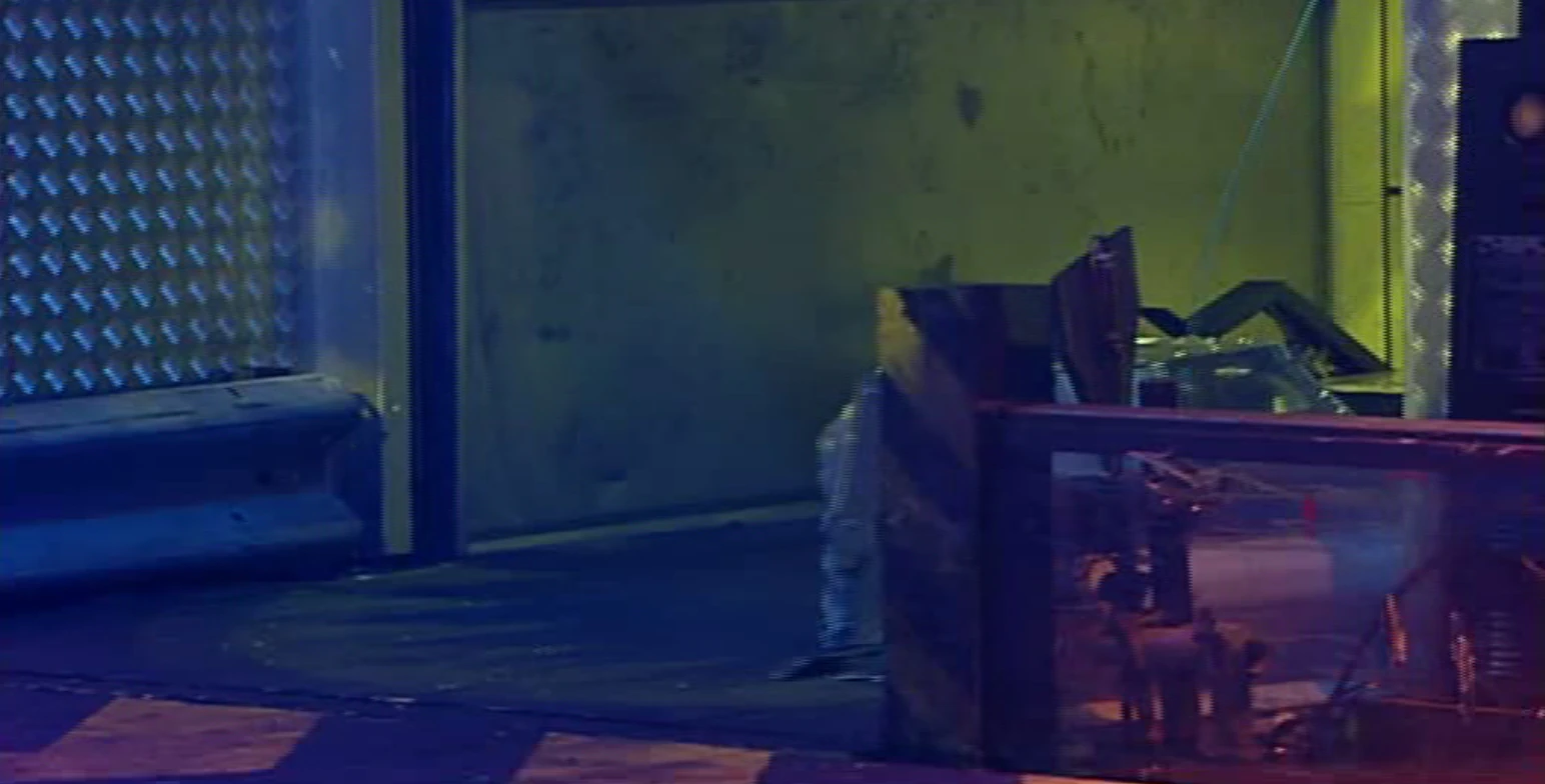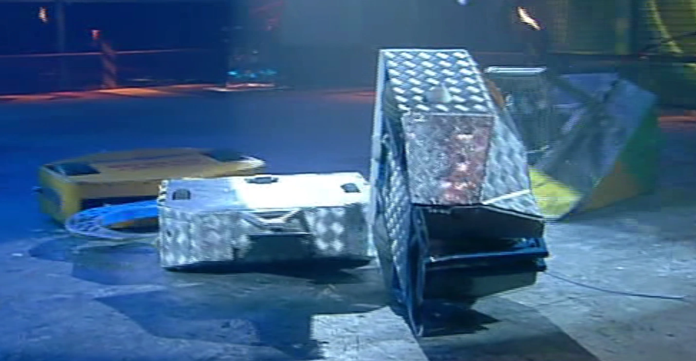 Afterwards, it was announced that Flippa couldn't enter the arena due to its aerial being accidentally broken off by EWE2 as the robots powered up to start.
