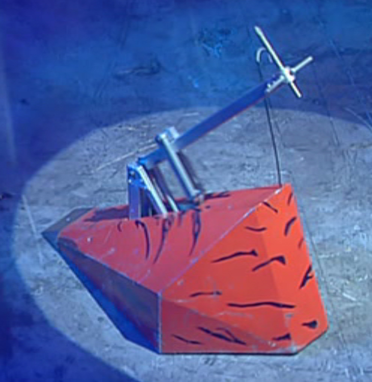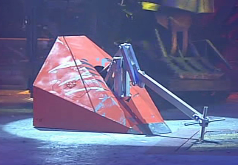 Bulldog Breed continued to flip the lifeless Hard around, but failed to flip out the smaller robot. Finally, Mr. Psycho hammered at Hard, but instead raised it and placed it on the Floor Flipper. As soon as it was thrown, Mr. Psycho carried it to the Drop Zone. A gas cooker was then dropped on Hard, who managed to hold up against the damage.