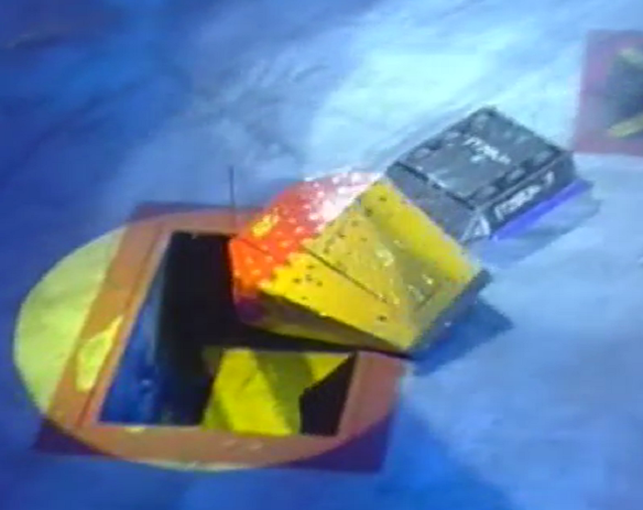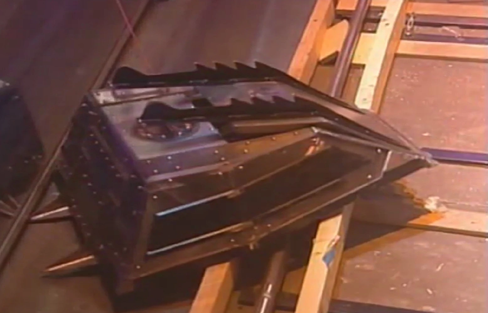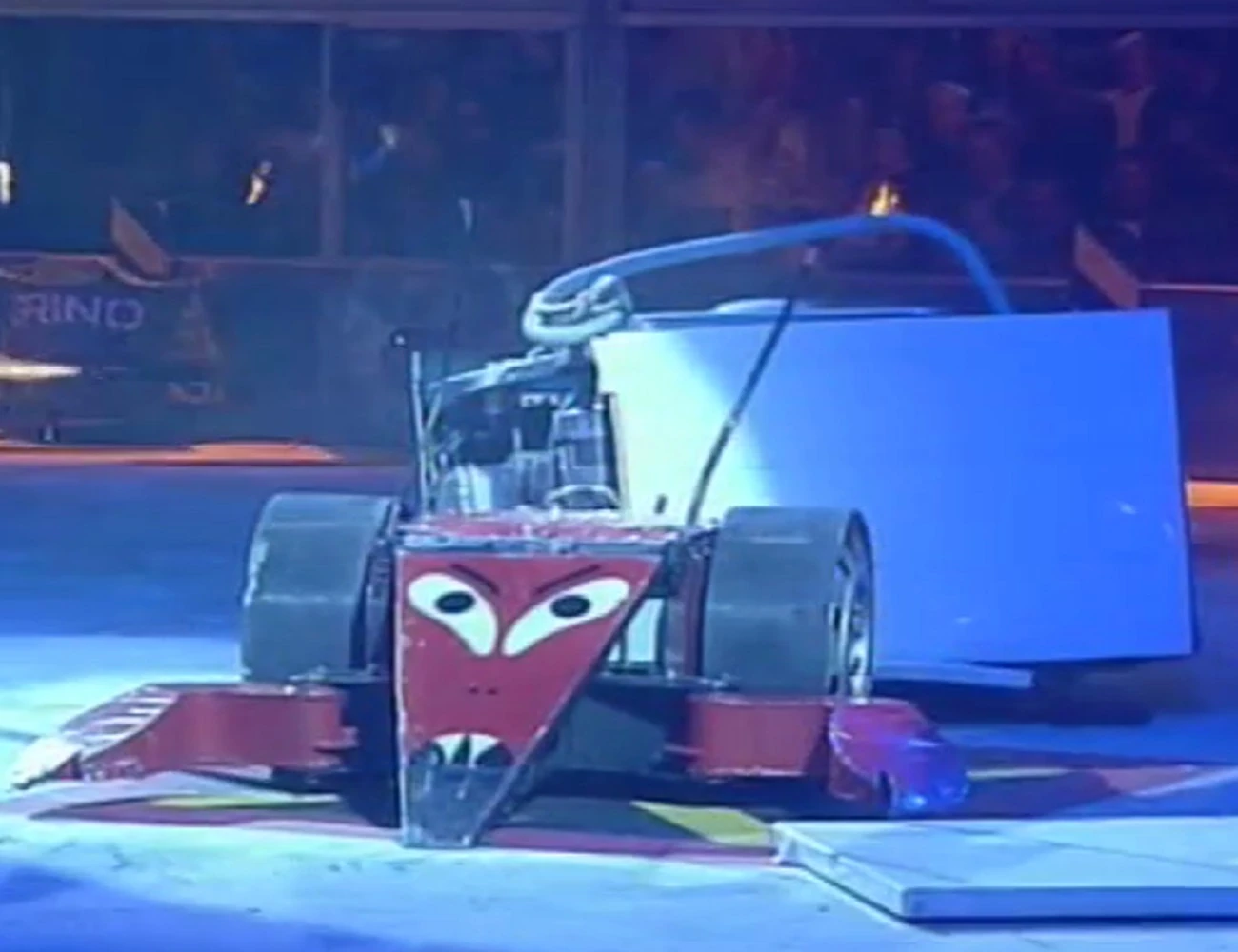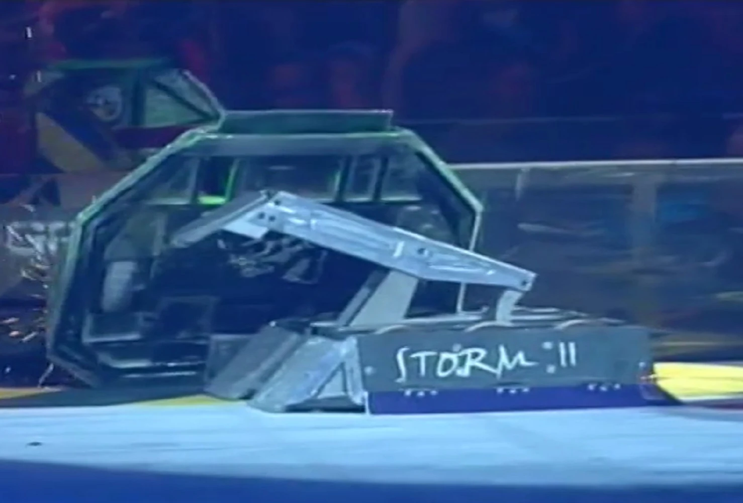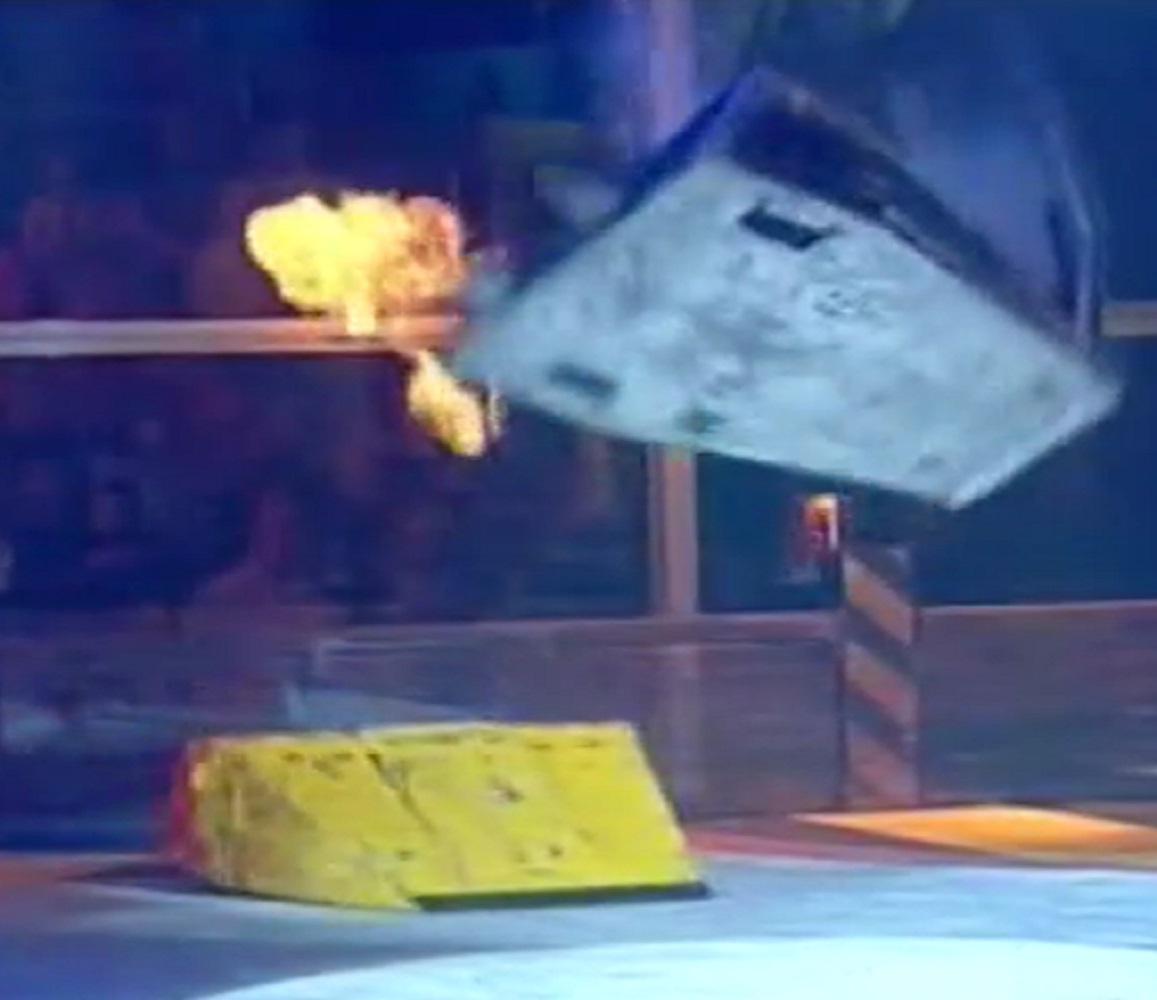 Firestorm 5 continued to be aggressive, but found it hard to get underneath Storm 2, now that the front strip had been bent, so it could only drive up the front of its opponent instead. Firestorm 5 continued to drive up the front of its opponent and Storm 2 was able to push it around the arena, nearly pitting it on one occasion, before finally pushing it into the Pit of Oblivion.