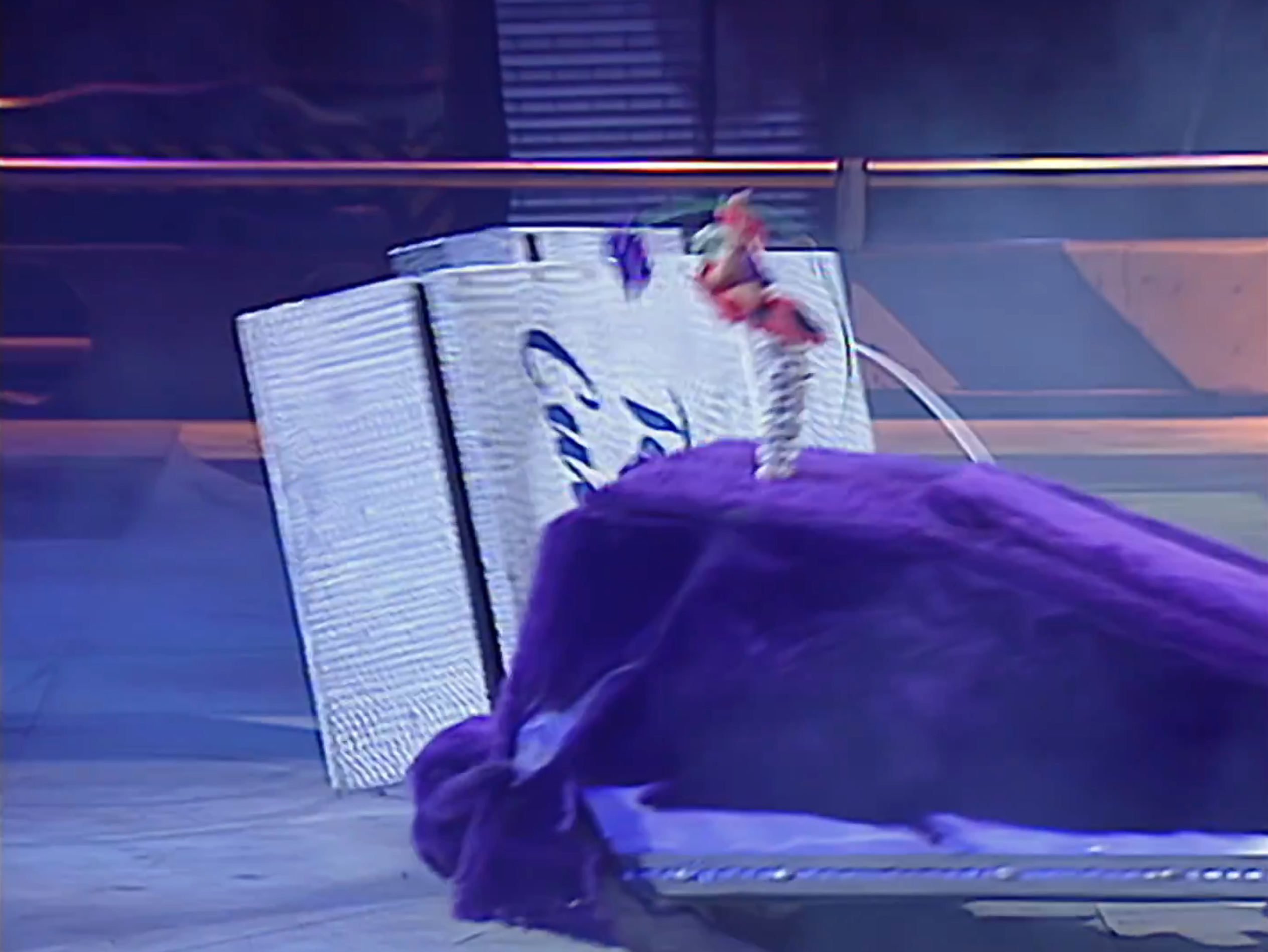 Purple Predator is bounced upwards by the Arena Spike