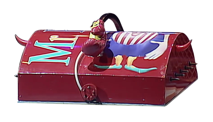 Mr Punch then reversed onto the Flame Pit where a short nudging match between the two was played out. Mr Punch then drifted too close to Shunt, who came in and axed Mr Punch three times.
