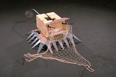 Described by James Straus as another 'low budget' entry, Satoru Special 3 again adopted the suspended drive and overhead turret concept used by its predecessors. A primarily wooden construction incorporated a large base panel and a box-shaped weapon housing for the turret. The back of Satoru Special 3's turret incorporated a 'traditional' cutting disc on a curved pole, the disc powered by a weedwhacker motor. An improved drive system was augmented by the incorporation of grippier rubber wheels.[10]