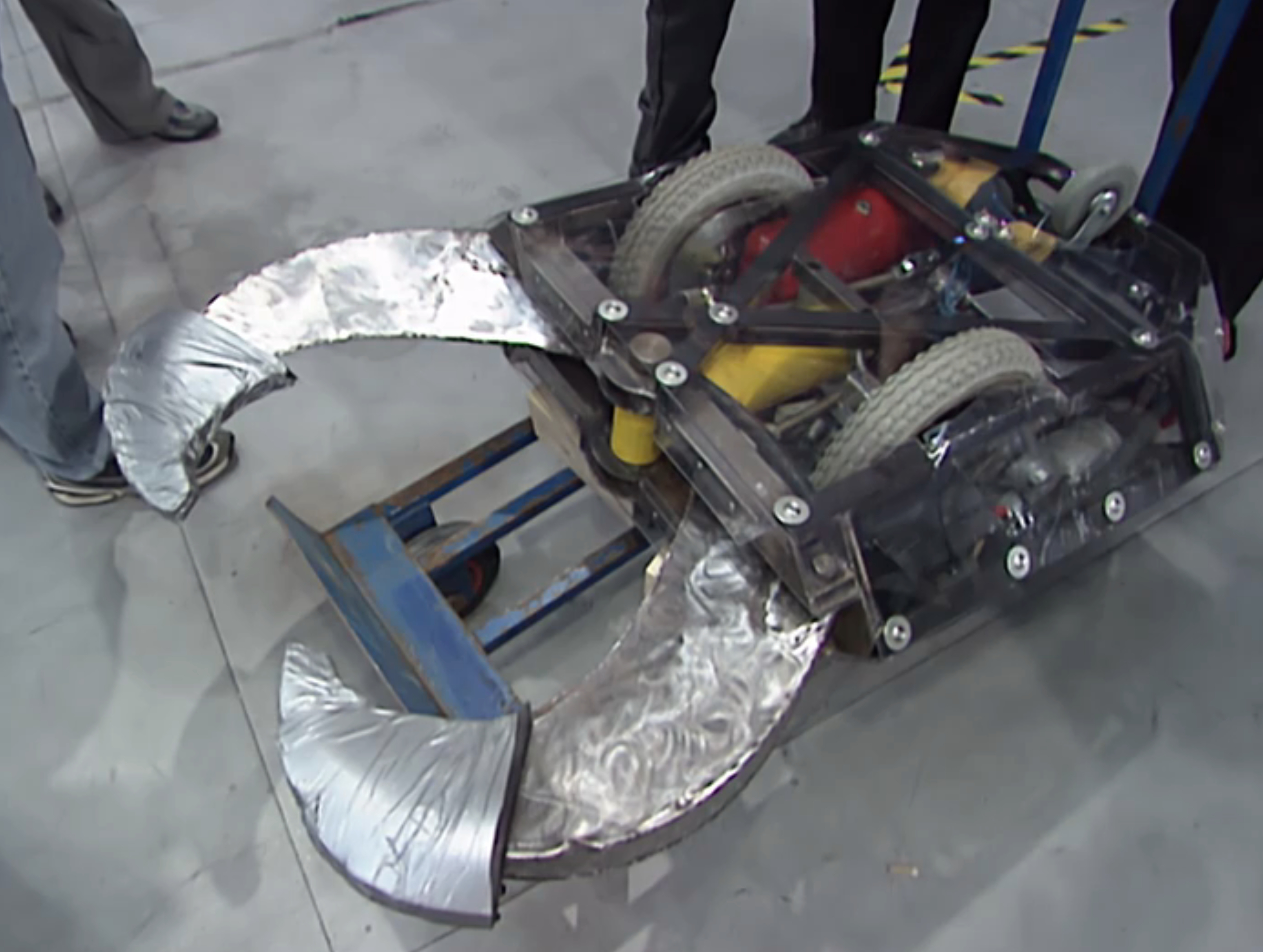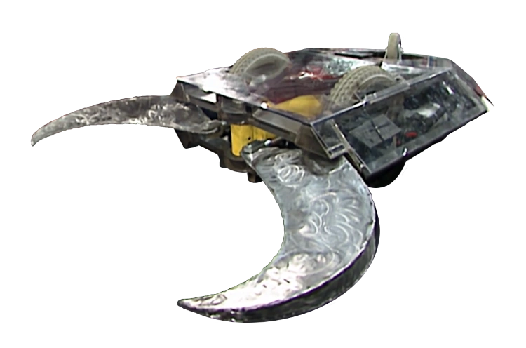 - "A sleek design, it'll beetle around the arena at only eight miles an hour though. Not quick. The jaws are hydraulic. The frame tubular steal. The twenty-four bolt motors come from a wheelchair."