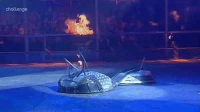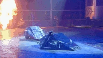 | Rear-hinged flipper | Robots are catapulted in an arch back onto their wheels. One of the most entertaining to watch but the one where CO2 depletion is most problematic. Chaos 2 was the first to self-right successfully using this weapon type (Series 3, Heat Final). | Chaos 2, Dantomkia, Apollo, Eruption |