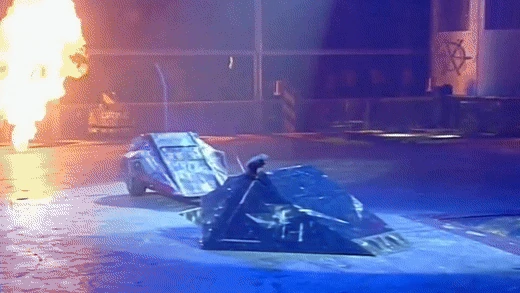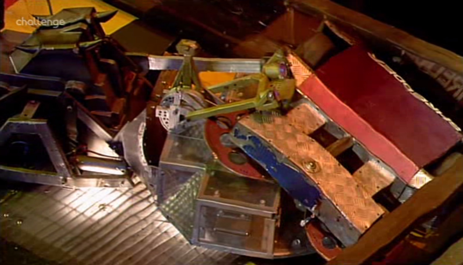 The origins of the self-righting mechanism lie not only in UK Robot Wars, but also in the original US competition, with famous American robots such as BioHazard and Vlad the Impaler.