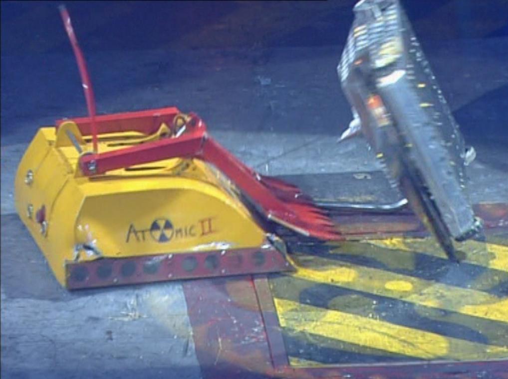 - In 1997, in another match between BioHazard and Vlad the Impaler, the latter demonstrated its top-mounted self-righting mechanism, consisting of an adapted pneumatic ram that could quickly and repeatedly thrust Vlad the Impaler back upright from an inverted orientation. The device was successfully used by Vlad the Impaler to self-right from an immobilised position several times, but did not prevent it from losing the match on a judge's decision.