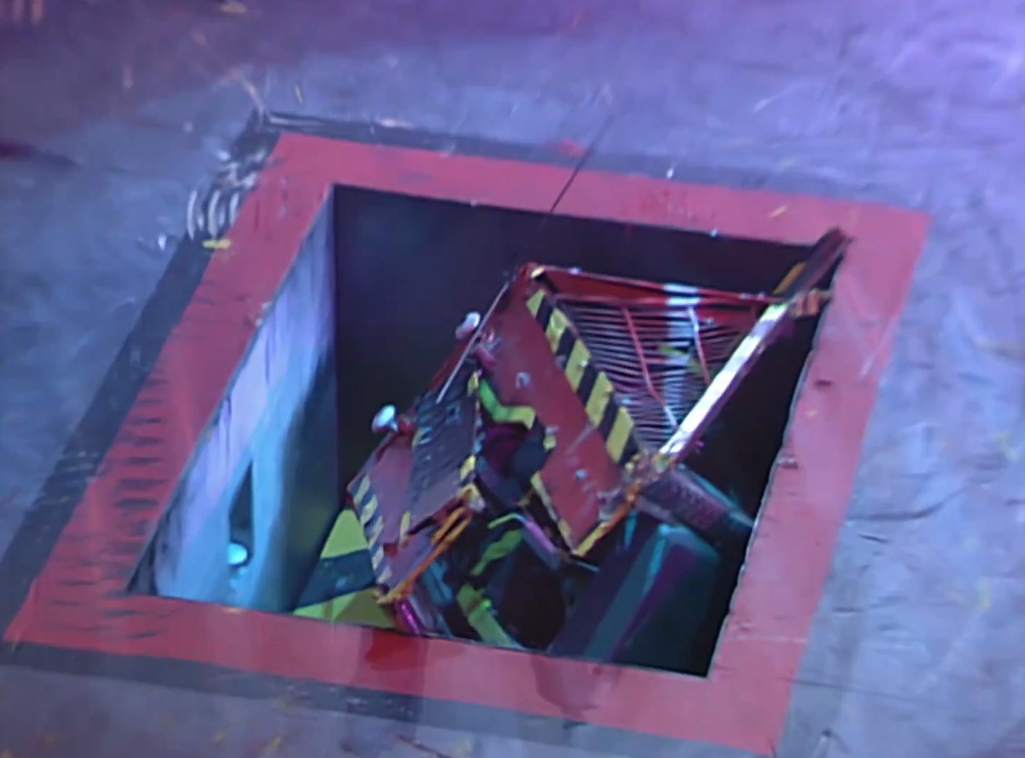 Dominator 2 relentlessly hammered Shadow of Napalm with its spiked axe. Holes were punched in Shadow of Napalm, and after managing to escape Sir Killalot, Shadow of Napalm broke down. Shadow of Napalm held on against Dominator 2 and Matilda to prevent itself going into the Pit, before it finally went down when Sir Killalot intervened, with help from Matilda. As Shadow of Napalm fell into the Pit, its chassis split in half.