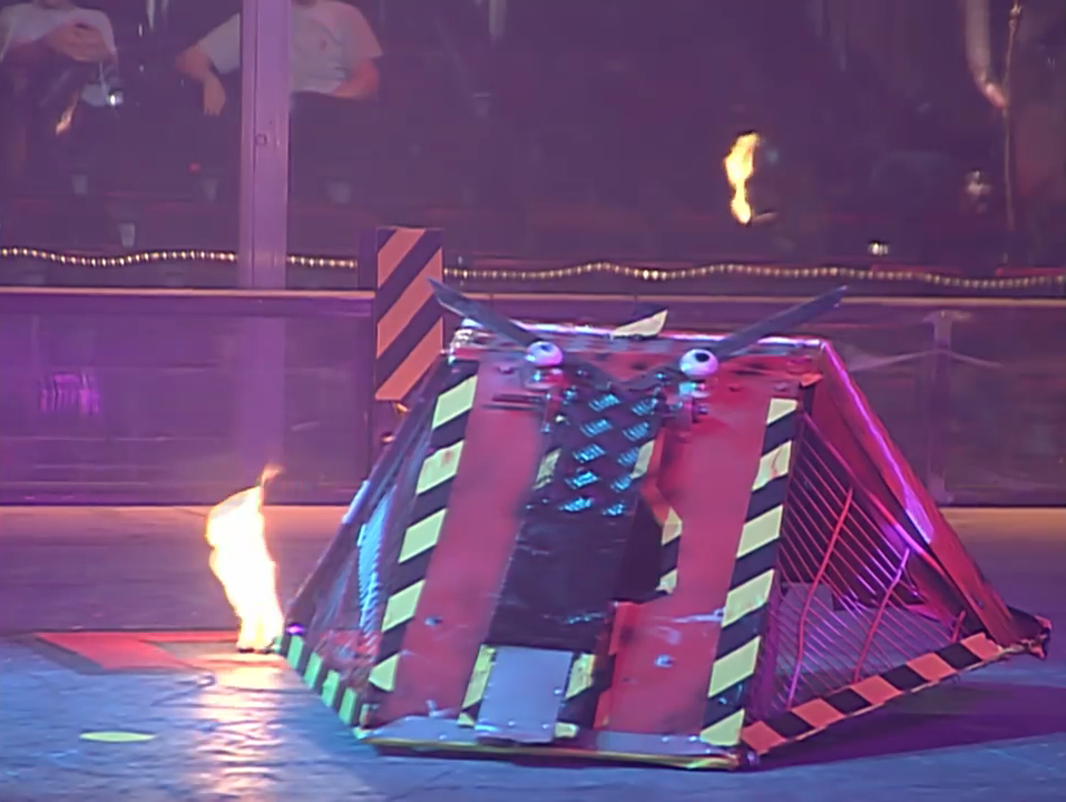 For unknown reasons, Shadow of Napalm did not appear again beyond this solitary UK Championship run. Dartford Girls Grammar would instead enter their Series 1 machine Detonator into the Series 4 War of Independence Christmas special, before bringing two versions of the original Napalm with them for subsequent series.