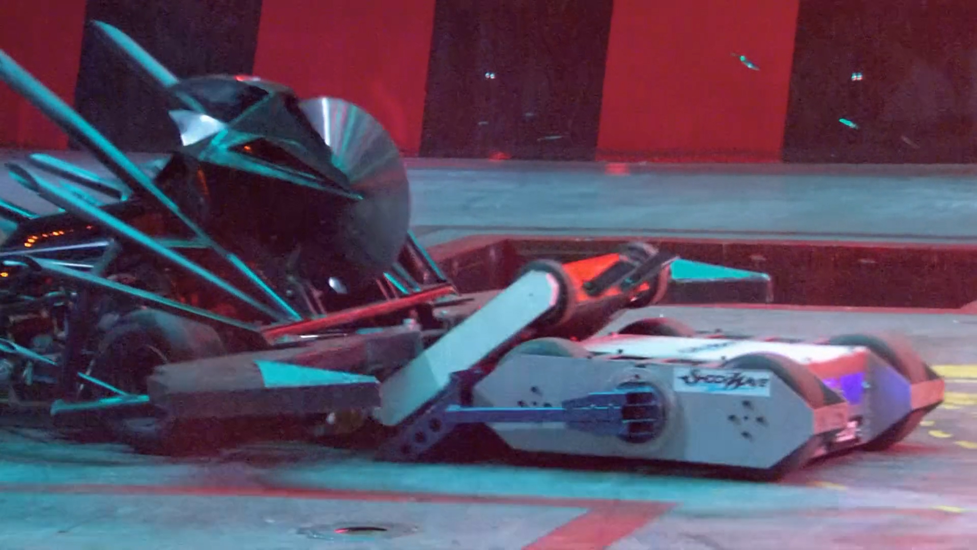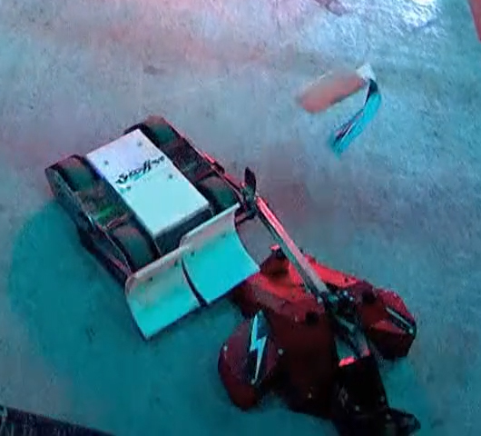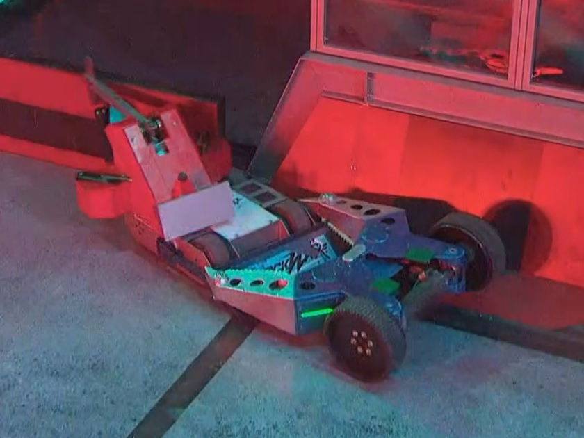 It was later revealed that Shockwave lost drive to one of its wheels during the melee, as the power in Shockwave's drive motor broke the drive chain, but this damage was repaired in time for the next round.