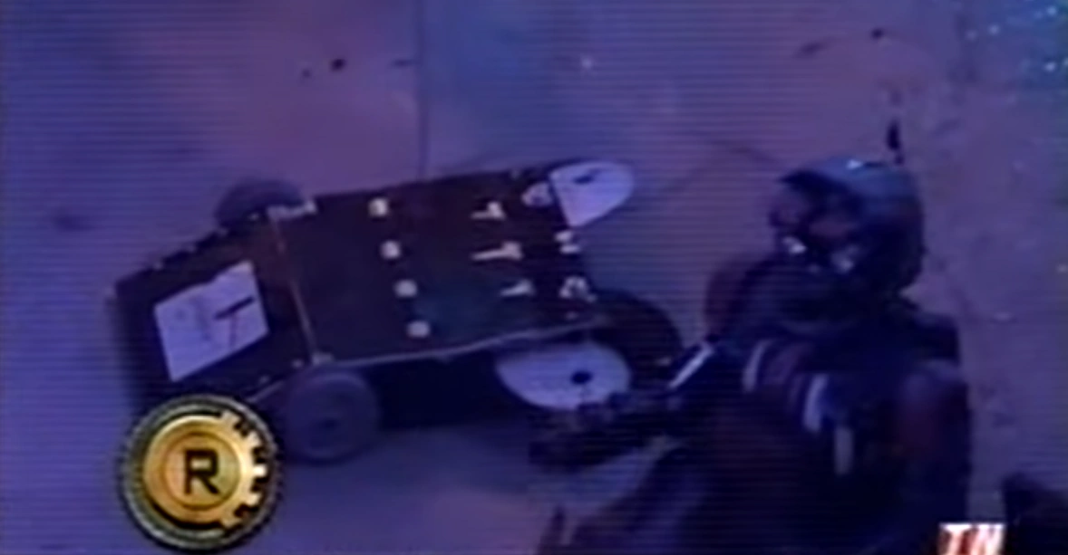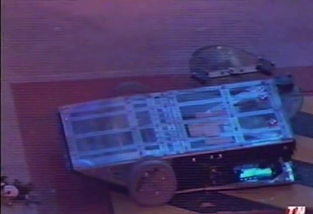 In the battle, Shuriken hit 6 Million Dollar Mouse, but stopped spinning, and Falcon became stuck on top of it. Shuriken had broken down as a result, and was placed on the Floor Flipper by Shunt, though only one wheel was on the Flipper, but it was enough where its weapons came loose as the robot was tossed through the air. The Brute won the battle on a Judges' decision. Shuriken was too badly damaged to continue competing, and the team drove the loanerbot, The Green Mouse in the Robot Rebellion.