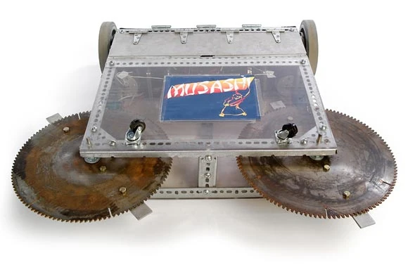 Shuriken was an invertible two-wheeled robot with two horizontal cutting discs with a yin-yang symbol painted onto them. These weapons, however, were not very durable, as they broke off when Shuriken was placed on the Floor Flipper, with the robot itself also becoming fully immobile under minimal pressure.