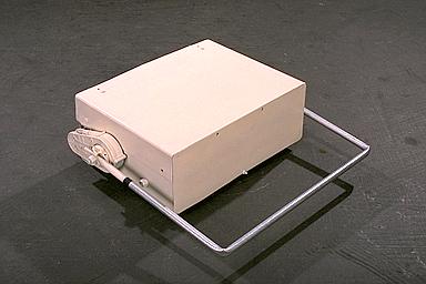 Intended to be an 'improved version' of the original 1995 machine,[1] Snickers 2 was a complete rebuild utilizing no fewer than six 'kiddie car motors', a mechanical speed controller setup throughout and a lead-acid battery sourced from a ride-on lawnmower. Four of the motors would be used to drive the robot's wheels, with two on each side, each controlled by a dedicated AM radio system. The remaining two motors would form the basis of a large lifting frame, which was hinged between the center and the rear corners. Similarly to its predecessor, the shell of Snickers 2 was repurposed from multiple computer cases.[4]