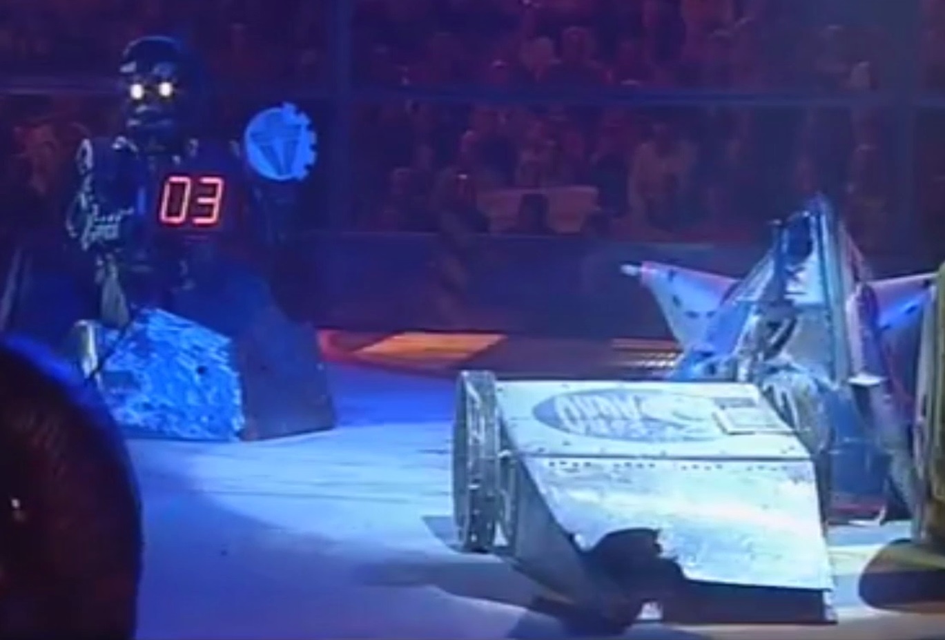 - — Jonathan Pearce as the two robots try to get under the other