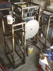 As one of the only working walkers in Series 3, Stomp automatically earned a place in the Walker Battles. Carl Nielsen and Tim Mitchell continued working on Stomp following its Series 3 appearance, while team members John Lilley and Simon Fry left the team ahead of Series 4. Nielsen and Mitchell were joined by two new team members - Malcom Ramsey and Geoff - to work on a new version of Stomp, STOMP2 for that series. However, they did not complete STOMP2 in time for it to appear in Series 4, although the team stated that they would possibly complete it for Series 5 instead. It is currently unknown whether STOMP2 was completed in time for it to qualify for Series 5, or how it failed to qualify if it had. After this, STOMP2 was scrapped.