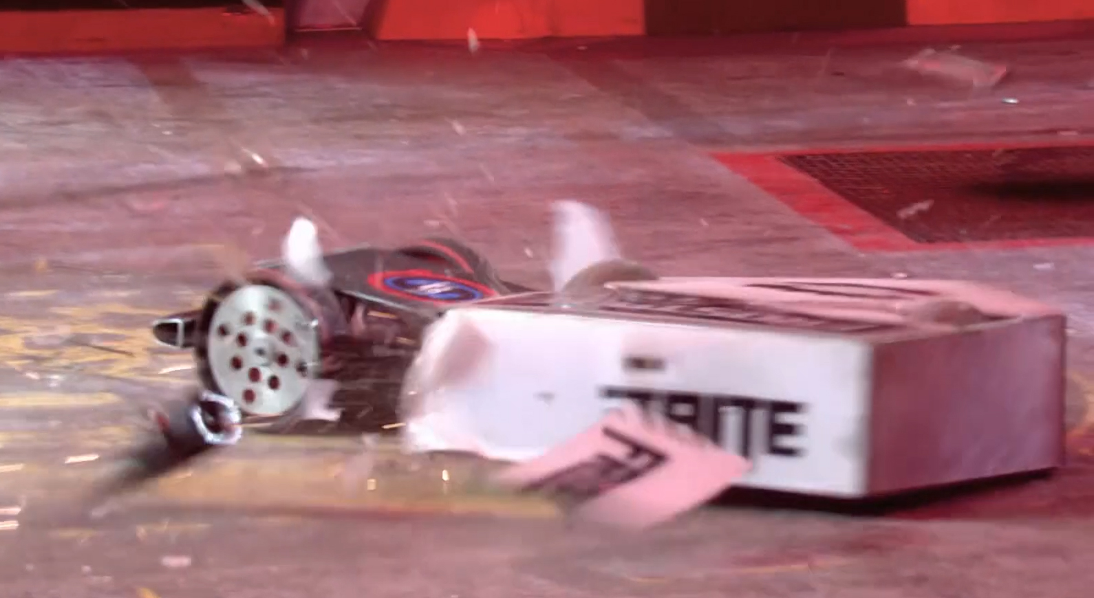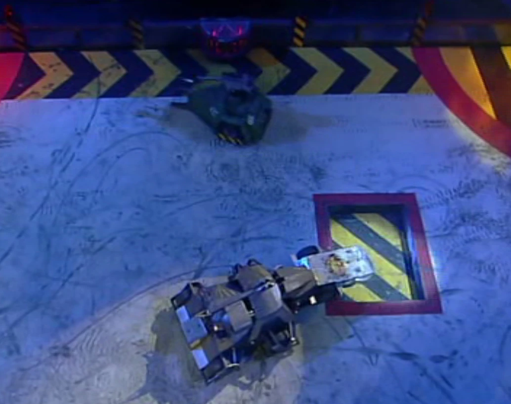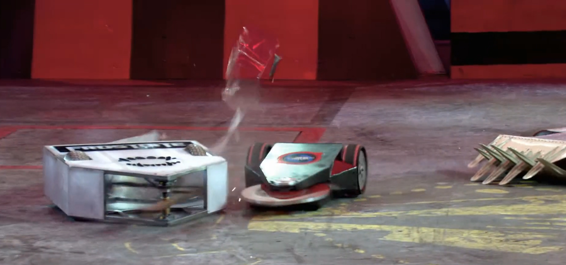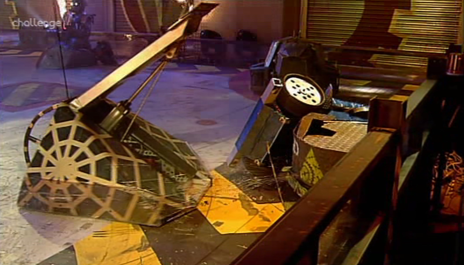 Supernova drove back up the arena and rammed into Spawn Again, then Tiberius 3. Spawn Again was struggling to move, so Supernova continued to hit it, causing a large scar in the side. Spawn Again stopped moving, and Supernova landed a couple more blows as Tiberius 3 was counted out. Short Circuit was pitted by Sgt. Bash, and Sir Killalot put Tiberius 3 on the Floor Flipper which threw it before Sir Killalot pitted it as well.