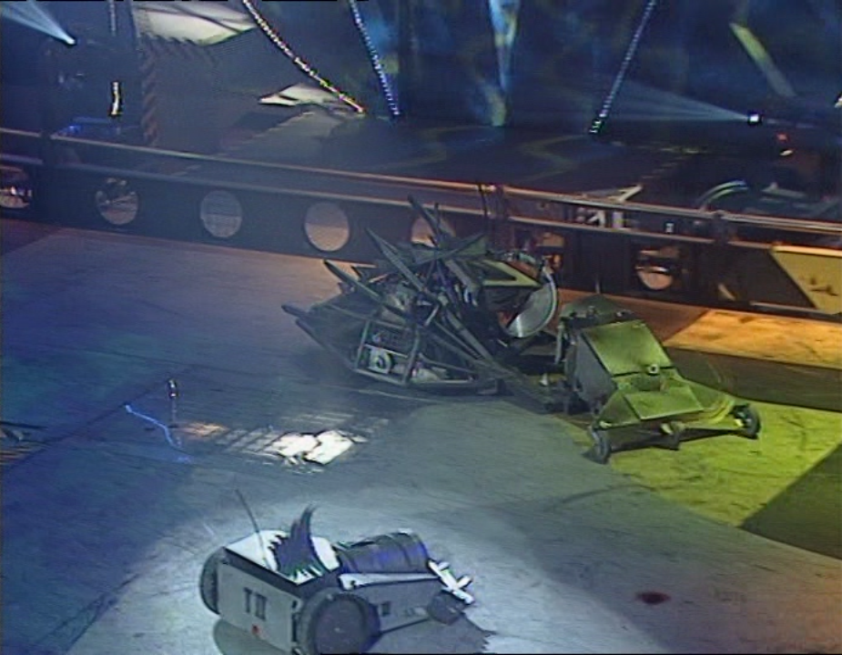 The Judges ruled that Vector had been immobile long enough to be considered out before T 2 drove into the Pit, therefore T 2 progressed into the next round instead.