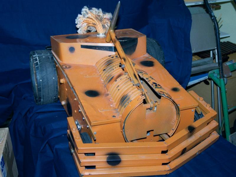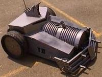 It was powered by two 12V batteries and wheelchair motors, giving a top speed of 9mph. The motor controller was homemade[1] and the robot had internal fans to prevent the speed controllers overheating. It cost £500 and took 200 hours to construct.