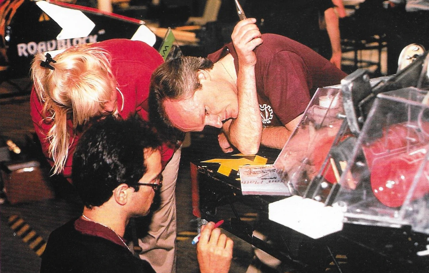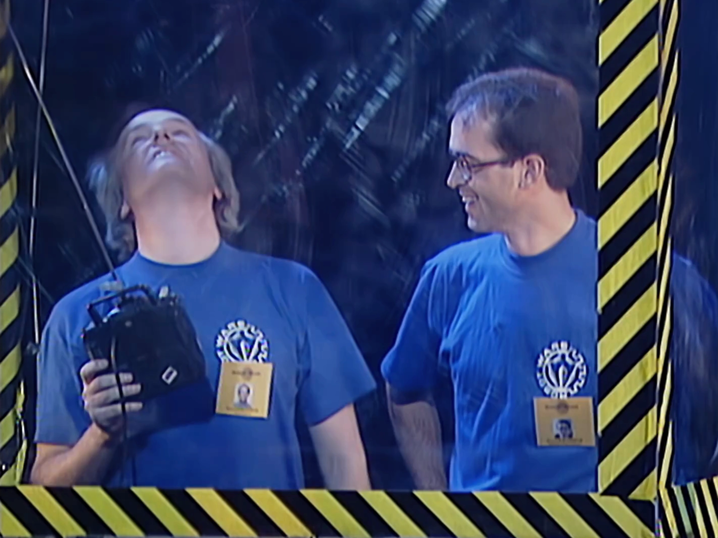 In Series 2 and 3, the team wore generic T-Shirts with the Robot Wars logo on them (maroon in Series 2 and blue in Series 3).