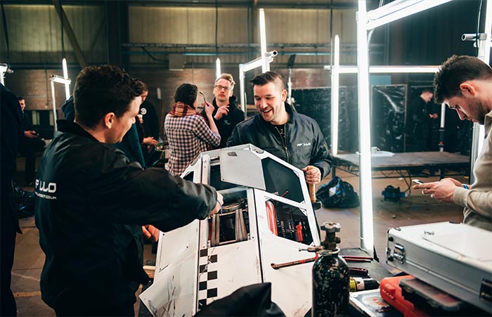 Gladiator's team in the Extreme 2 Featherweight Final (centre), with Dave Young at the controls