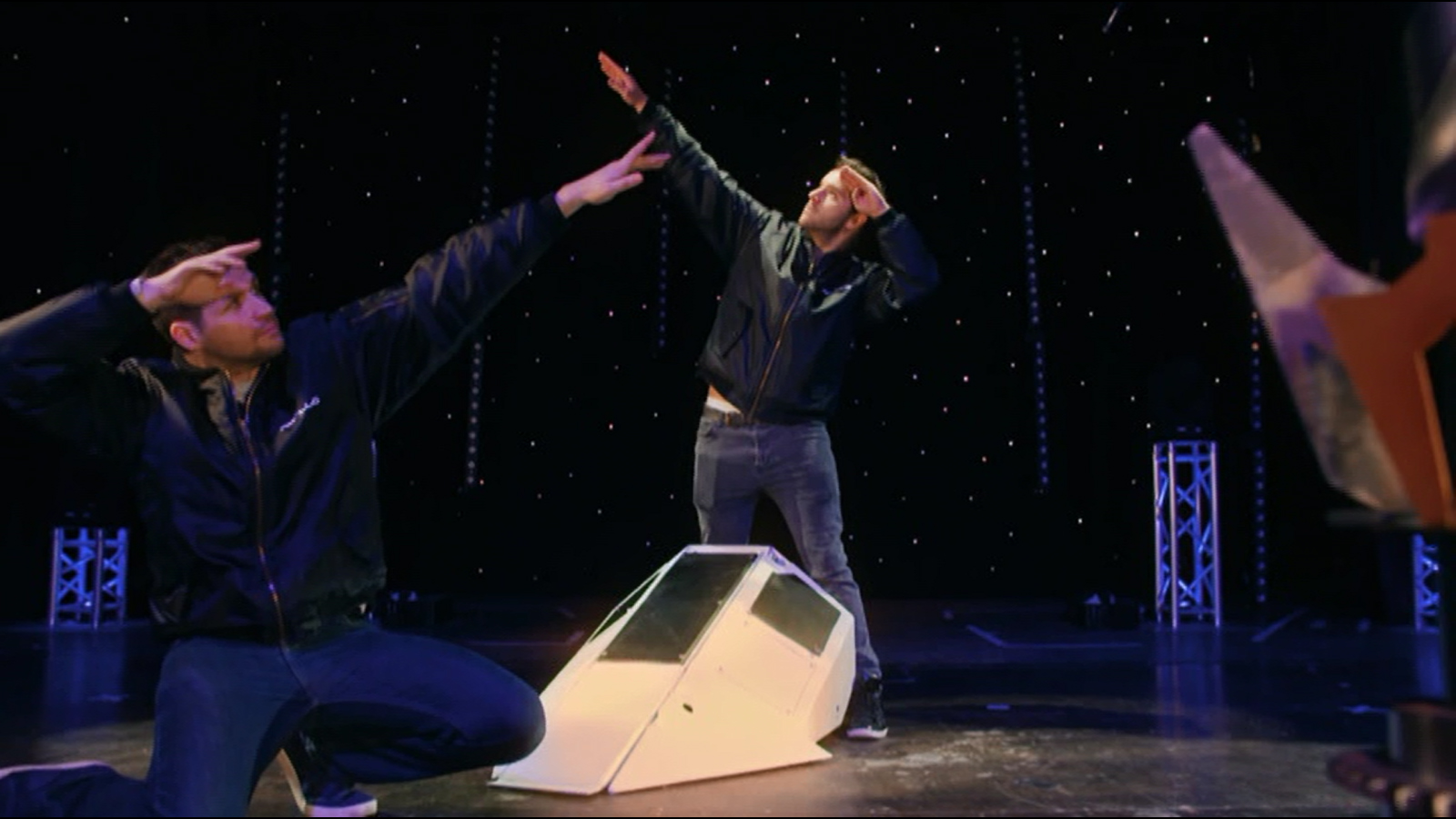 Ben Bacon (left) makes repairs to Apollo in Series 8