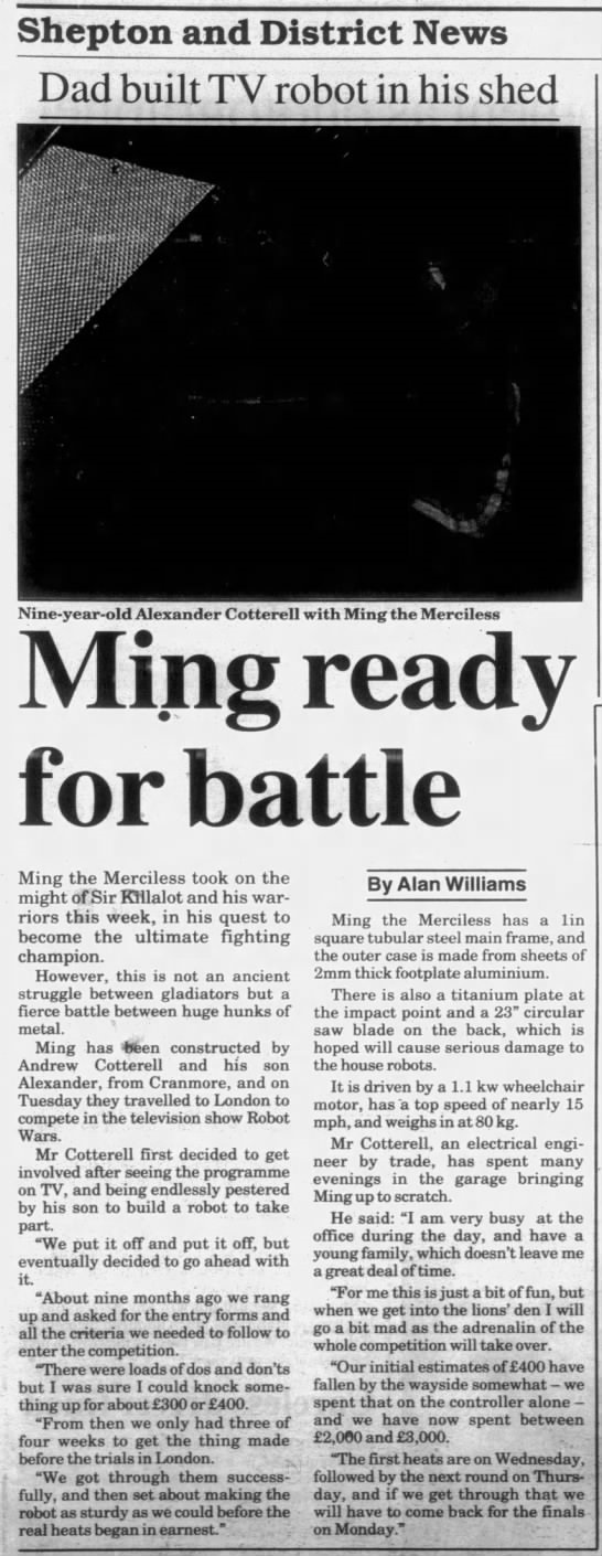 - ↑ Shepton and District News - Ming Ready For Battle, 1999
