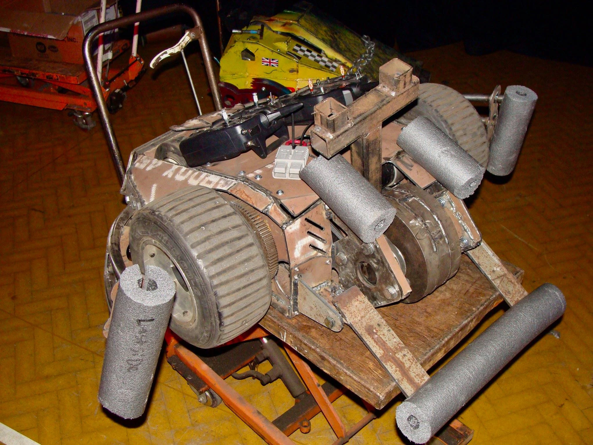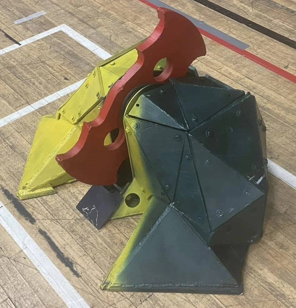 For the 2025 Extreme Robots tour, the original Axel conversion was retired and replaced by a newer build. The 2025 Axel, debuting on the Guildford stage on 7-8 June that year[53], carries over internals from the 2024 iteration, paired with a new chassis shape and an array of interchangeable single axe heads.[54] In between appearances at Extreme Robots, it once again formed part of Team Roaming Robots' heavyweight fleet for RoboRiots (4-5 October), finishing the Irish Heavyweight Championships third overall.[55]