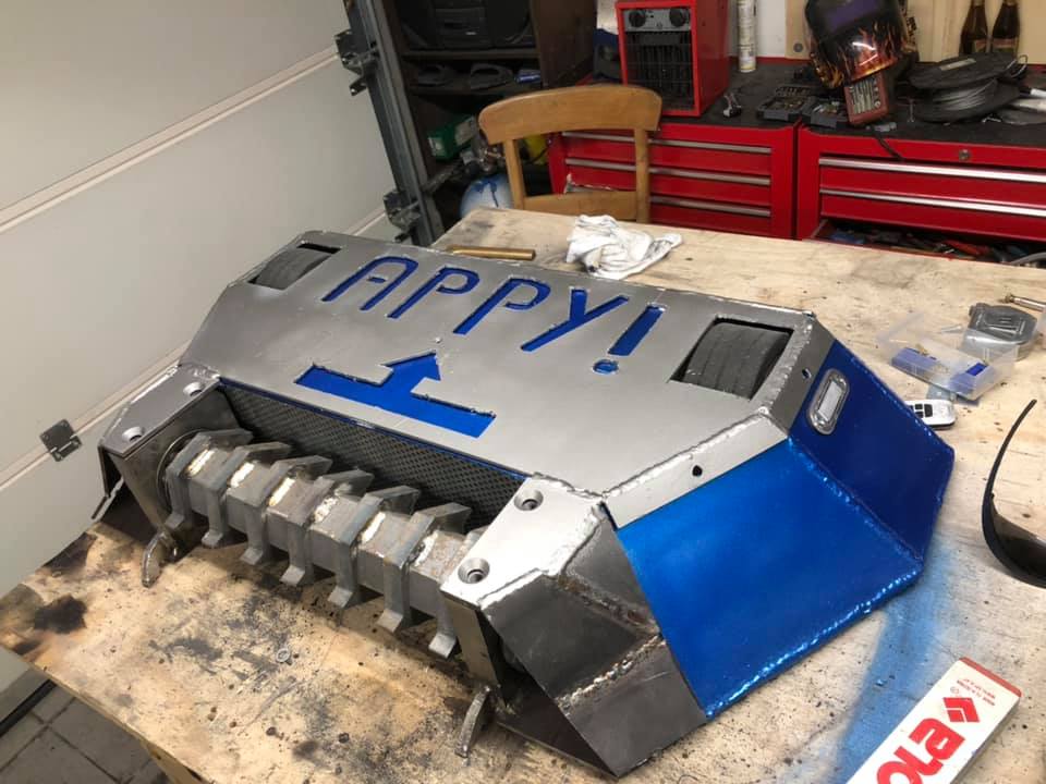 After competing in Robot Wars with Cobra, the team returned to competing in live events with Brutus, also starting to build a middleweight version named Brutus Jr reusing drive motors from Pika 3. The team did, however, build a brand-new heavyweight robot called Appy, named after Stefan Vanthoor's dog. Appy was a two-wheel driven invertible robot armed with a drum spinner. This competed at Extreme Robots in Maidstone alongside Brutus in 2019, where it defeated Donald Thump in a head-to-head, but became immobile in a four-way melee against Galactus, GABOS and Nibbler. Team Rubbish revealed the CAD for a new version of Appy in January 2020.Citation?