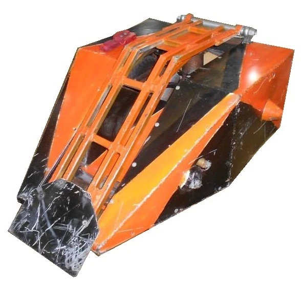 The team's first competitive featherweight was completed in 2004, being a full body spinner named Dizzy Tilly. This found a great degree of success for a new machine, achieving two podium finishes at its first two events, including a surprise victory over Little Spinner. A newer version of Dizzy Tilly was also competed in the Featherweight Championships between 2009 and 2013 without great success before later being conceptualised as a heavyweight for Robot Wars. Dizzy Tilly was registered to compete in the FRA World Championship 2004, alongside a second robot from the team named Pushabilatilly[1], though the event was cancelled last-minute.