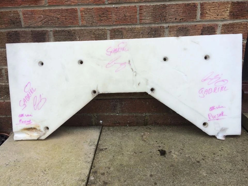 Side panel + side bar | £245 | Panel was used during Tornado's appearances in Series 4 and Extreme 1, and features damage from Stinger which was rectified using a heat gun. |