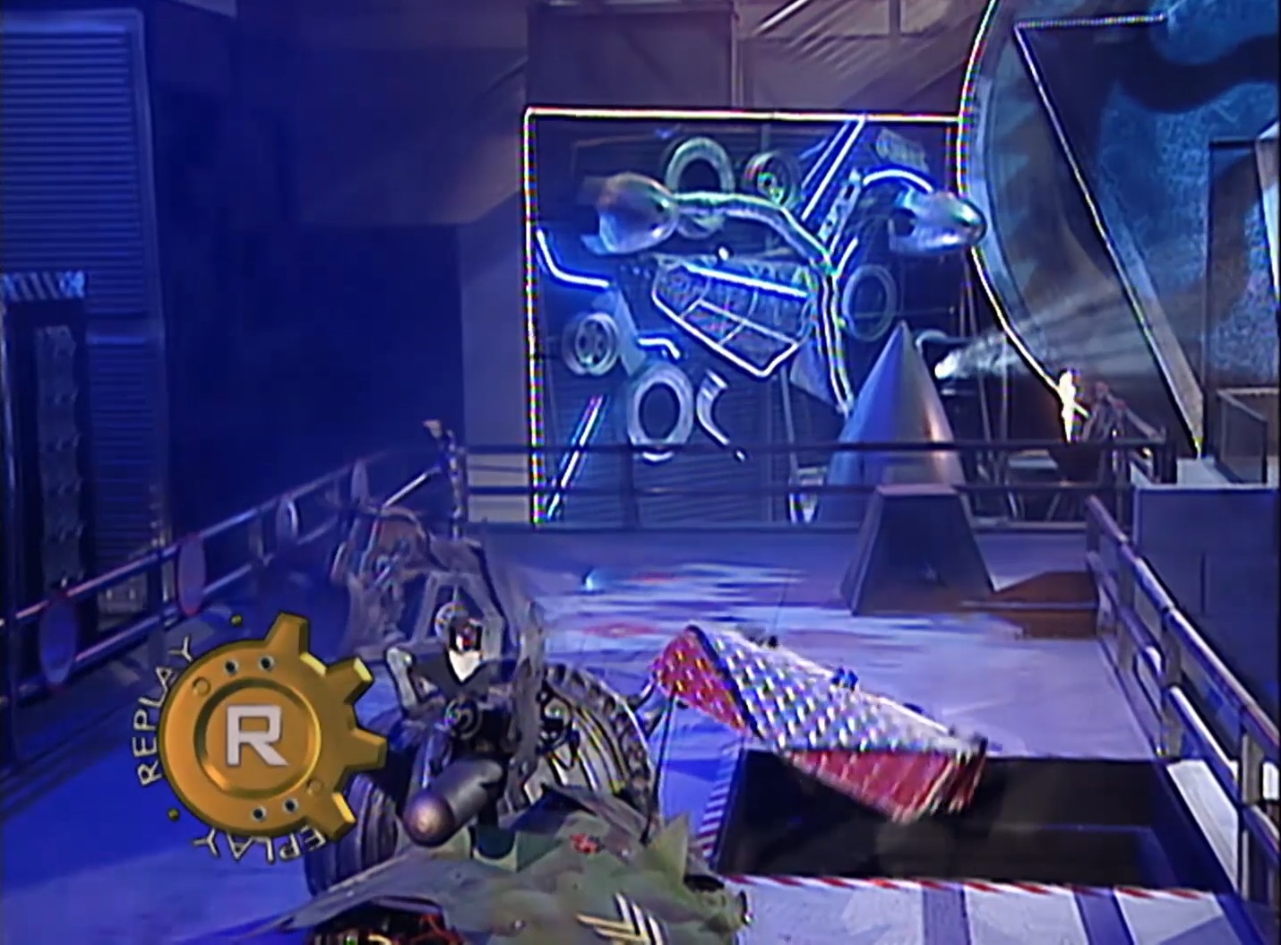 Panic Attack gets wedged on the Ramrig. Note the sphere (right) that was added for Semi-Final 1