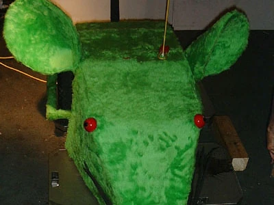 As its name suggested, The Green Mouse was a two-wheel drive robot designed to resemble a mouse, covered in green fur and complete with floppy ears, whiskers, tail and a pair of eyes. Its weapon was a pneumatic lifter that formed the robot's snout, described as a flipper by the statistics boards. The Green Mouse's lifter was reasonably powerful, but its weight imbalance gave it a tendency to lift itself up while trying to lift opponents, while the robot's fur was also flammable. The Green Mouse also had largely exposed wheels and lacked a self-righting mechanism, the latter of which proved to be its major undoing during its only battle in Extreme Warriors.