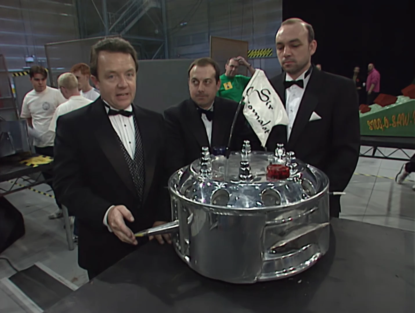 The Hub Nuts were a team from South Ockendon, Essex, originally consisting of work colleagues at Scantruck, a truck distributor, and were creators behind Sir Chromalot, a unique and distinguishable robot always sporting a chrome paintjob. Similar to the International Wreck Crew, the team portrayed themselves with over-the-top personalities, in their case as upper-class gentlemen that were well-spoken and wealthy. They were considered to be excellent sports and comedians, guaranteed to offer entertainment and laughs throughout their appearances. Despite their light hearted boastfulness about their robot being superior, Sir Chromalot never escaped the heats during its time on Robot Wars, consistently falling in the second round of the heats in all four of its main series appearances. As well as this, the team unfortunately never received any awards, but were nominated for the Sportsmanship Award in Series 3 and 4, but did receive the untelevised Best Entertainers award in Extreme 1. However, they were very helpful to other roboteers in the pits and proved to be very popular amongst fans. The team made their final appearance in Extreme 2 and would ultimately fail to qualify for Series 7.