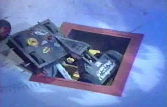 As before, it remained in its corner at the start as General Chompsalot 2 and Black Widow fought first, before finally leaving to press the Pit release button as Rocky-Bot-Boa joined in the battle. The Termite was then pinned in between Rocky-Bot-Boa and Black Widow, before Rocky-Bot-Boa pitted General Chompsalot 2 and itself seconds later. This left The Termite to fight Black Widow alone, with Black Widow getting underneath The Termite and using its wedge to bend its right-rear wheel cover. In the process, The Termite lost the drive chain for its drum, leaving it trailing as it drove back and forth across the arena.