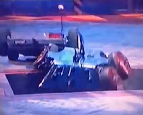 Eventually, The Termite was attacked by Dead Metal and bumped into Refbot, still moving along on its three remaining wheels. However, it struggled for mobility as Revenge and Brute bumped and pushed it away, and eventually stopped moving completely as its battery ran out of power again. Brute bumped and pushed The Termite towards the Pit, eventually succeeding. As a result, The Termite was eliminated from the Annihilator.