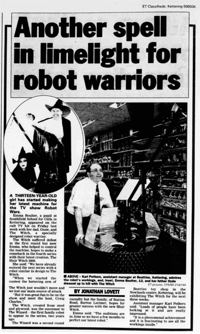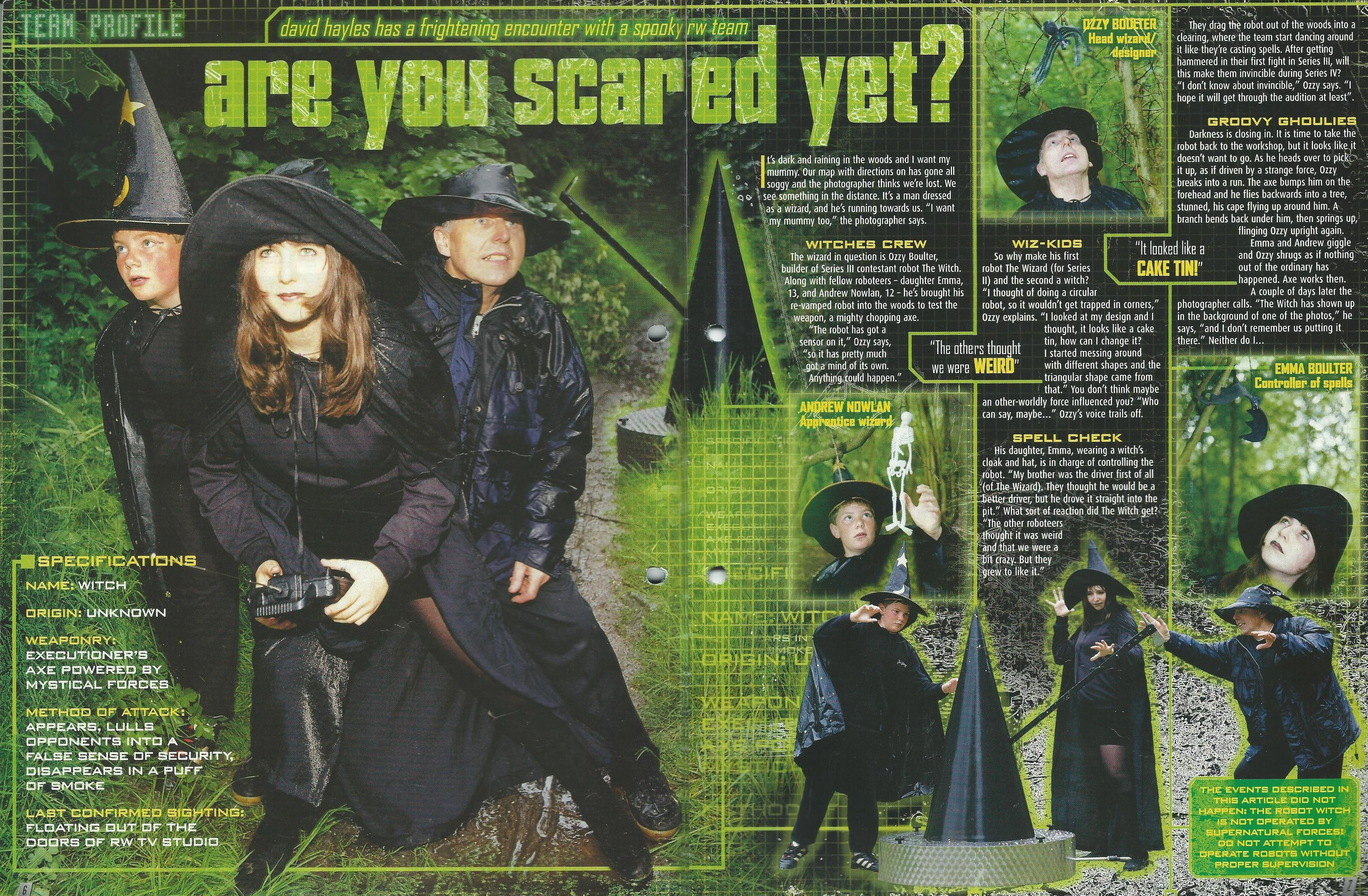 - Team Wizard gave an interview in issue 4 of the original Robot Wars Magazine, in which they jokingly claimed that The Witch's axe was powered by "mystical forces".