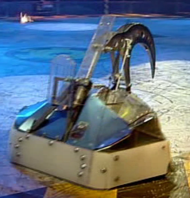 - "Fairly fast, highly manoeuvrable with the powerful hydraulic crushing weapon as we've seen, good control, low ground clearance, tough armour, which is rare for a crusher, but is slow self-righting."