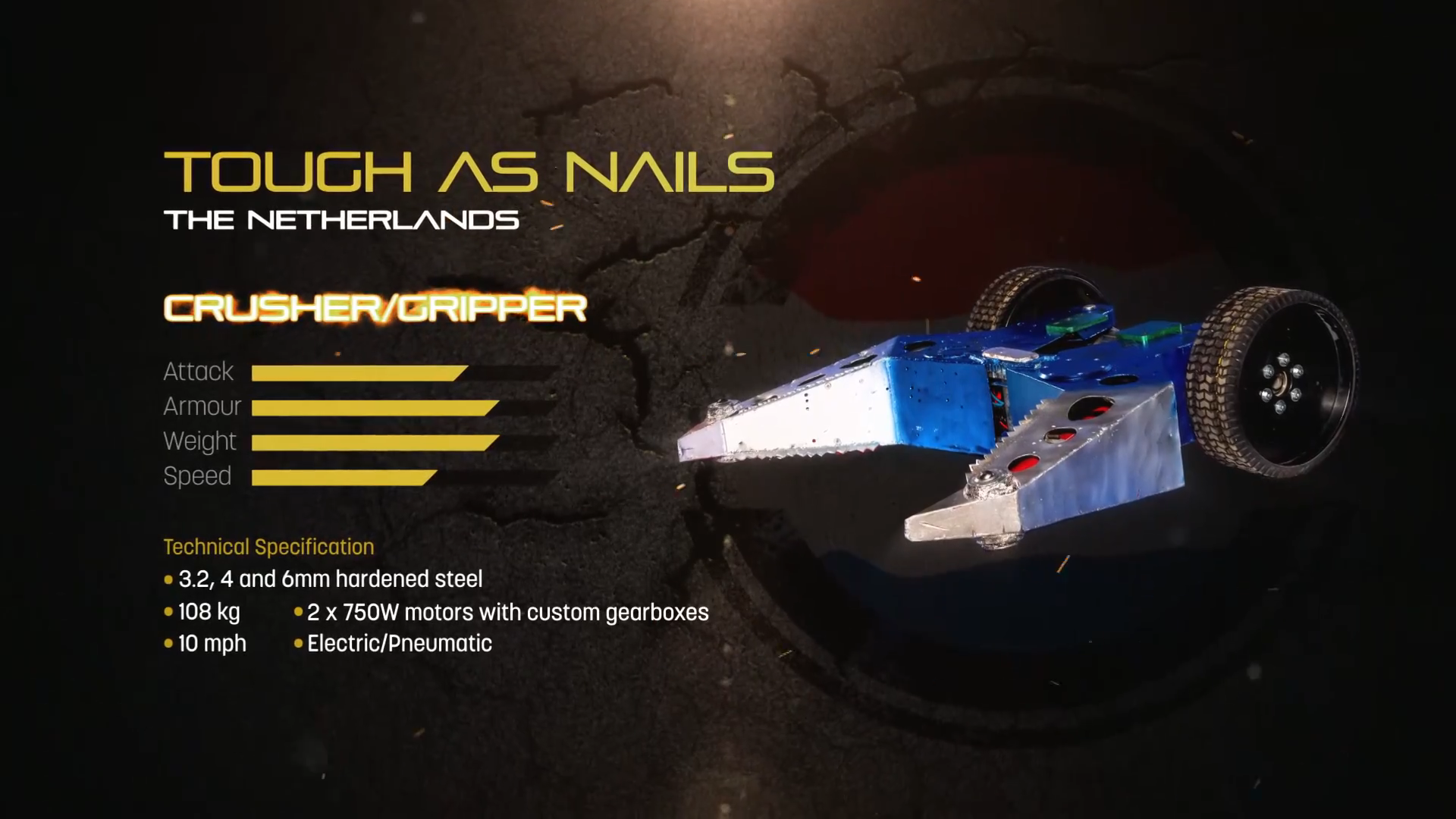 As well as the UK Championship, Tough as Nails also competed in the Third World Championship. First of all, it faced Scraptosaur and Gravity in a Dutch qualifying battle, in an attempt to join the Dutch champion, PulverizeR, in the main competition.