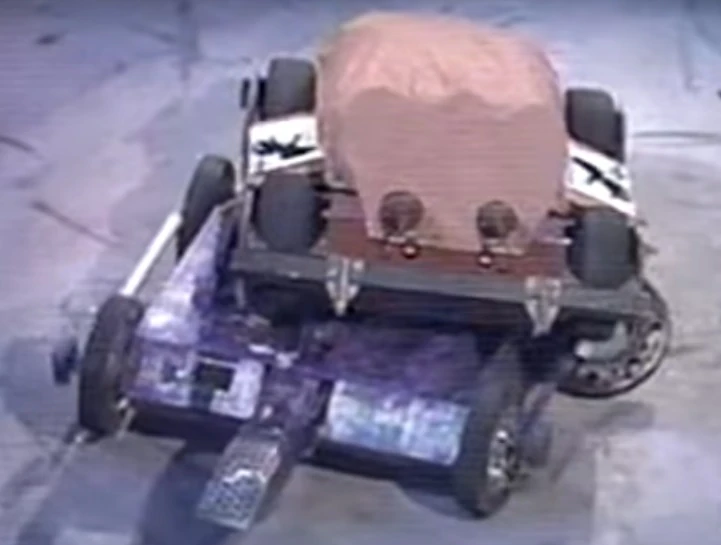 - "The battle commenced as a final should- both robots accelerated full-tilt and met mid-arena with a resounding crash that you could feel in your chest. 437lbs at 30+mph closure speed, you do the math..... It was one of the most awesome impacts I've seen. We tangled and tussled, each of us getting to the other's side and shoving. Early on we got the weapon under him a couple times. By the second time I yelled for Ron to fire the !@#$%&* weapon! He said he had been trying. The last thing I wanted to hear was his next statement: "I got nothin'". *sigh* So be it- this will be a battle of rammers."