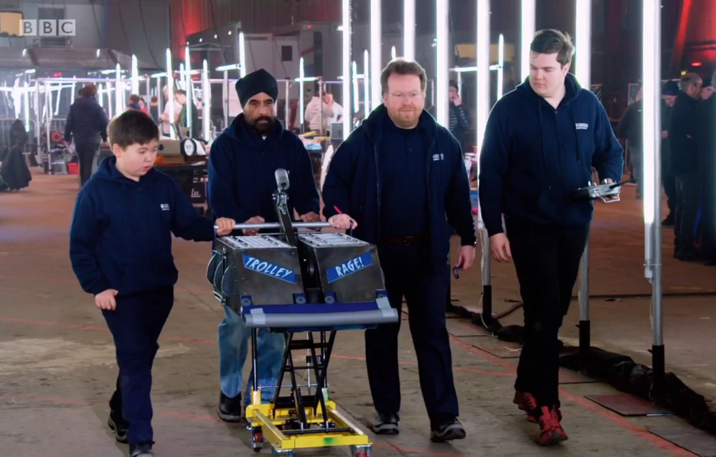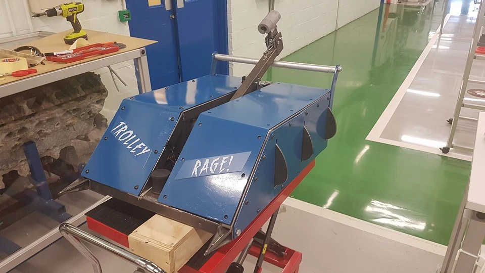 - Trolley Rage's wheels were covered in bike tyre for extra grip, and the team brought spare tread which was eventually used by Arena Cleaner.