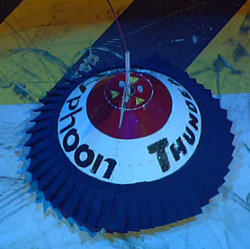 Typhoon Thunder was a lightweight robot that competed in the Lightweight Championship in Extreme Series 2, which it won. Typhoon Thunder was one half of the Typhoon Twins, alongside Typhoon Lightning, which achieved second place in the Extreme 2 Middleweight Championship.