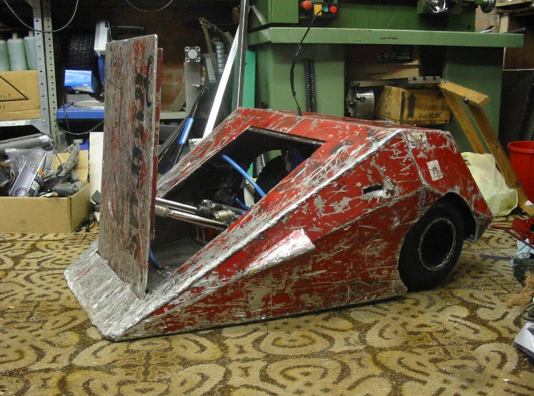 - "A compact invertible machine thing with a weapon thing that combines the ability to lift and crush and cut opponent thingies. But the weapon is only really effective when right way up."