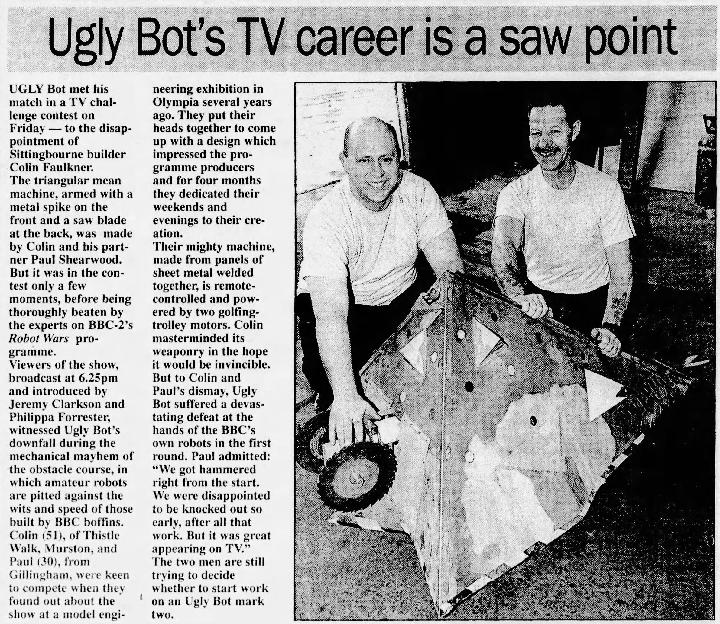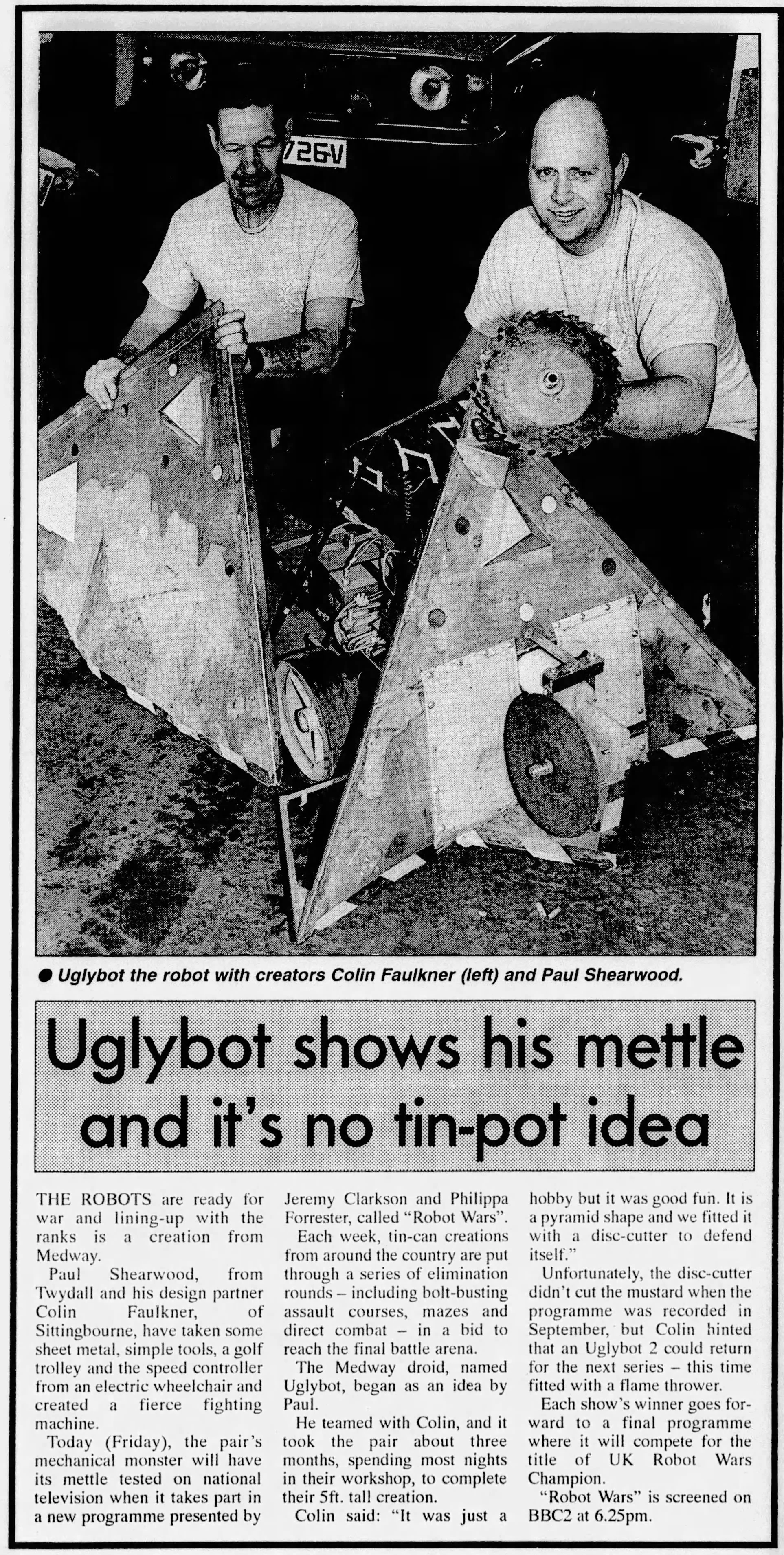 - The Uglybot team was the only team from Series 1 to lose in The Gauntlet and not make a subsequent appearance in later series of Robot Wars, despite Paul Shearwood stating his intention to return when interviewed after the Gauntlet, and Colin Faulkner suggesting the team may return in the next series when interviewed for the Medway News[3].