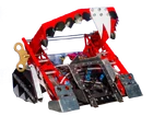 Series 4 | Consisted of a vertical crusher and a rear-hinged flipper mounted together on the same arm. The leverage from the crusher raised the rear wedge, which was supposedly capable of lifting a double-decker bus. Functioned similarly to 8645T, the Series 7 version of Robochicken and the Series 5 version of Sir Chromalot. | Armed both the front and back of the robot at the same time. Useful when attacked by multiple robots. | Ineffective at self-righting. |