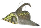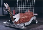 1995 US Championship | A sacrificial robot created for an exhibition match organised for Blender Magazine. Concealed within the front end, the twin dart launcher was intended to provide the robot’s only means of attack against The Mulcher.[2] | Fast-firing. | Very limited capacity and damage potential. Each dart could only be fired once per battle had the weapon been used. Contravened bans on projectile weapons in Robot Wars rulesets. |