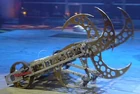 1996-1997 US Championships | Both incarnations featured an overhead swinging 'tail' with a spiked tip, used to strike opponents caught within the small horizontal front claws. The 1997 incarnation (The Scorpion) featured a sturdier tail assembly with a larger 'stinger' and an integrated rear lifter. A double spring mechanism gave the 'stinger' more articulation and a higher reach, along with greater inertia as the whole weapon swung down.[11][12] The jaws of the 1997 incarnation also operated differently to conventional horizontal types. Rather than grabbing and crushing, these jaws were initially set in a closed position, forming a 'needle point' to spear opponents' armour. Once this was achieved, the jaws would open outwards and 'tear wide' the affected armour section.[12] |