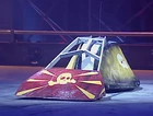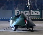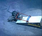 1995 US Championship | An entire 'gas-powered' lawnmower, positioned at a 45-degree angle and encased in a Kevlar composite shell. The blade was held above the arena floor, damaging any robot caught within the shell's front opening.[2] | Highly damaging; capable of destroying smaller objects in demonstrations.[34][35] | Posed major safety concerns due to its potential to fling shrapnel out of the arena; disqualified from the main Heavyweight Face-Off competition on this basis.[2] |
