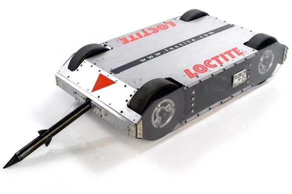 Described as 'a robot's worst nightmare' by co-builder Gage Cauchois, Vlad the Impaler was a four-wheel drive heavyweight powered by two gel cell batteries (weighing 45lbs each) and two Sullivan motorcycle starter motors. Both batteries were placed in a compartment set behind the rear axle, allowing their weight to be distributed as far away from the robot's front 'fulcrum' as possible. In tandem with a set of chain drives, this specification enabled Vlad the Impaler to accelerate from a standstill to a top speed of 20mph, within a distance of around ten feet.[3][4]