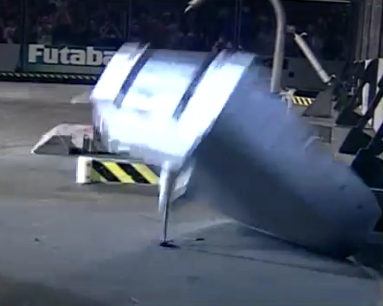 Vlad the Impaler reversed to the upper-left side of the arena, where it stood triumphantly for several seconds. Firing its forks repeatedly, it approached, then rammed Punjar completely over, before performing a victory spin in front of the audience.[14][15]
