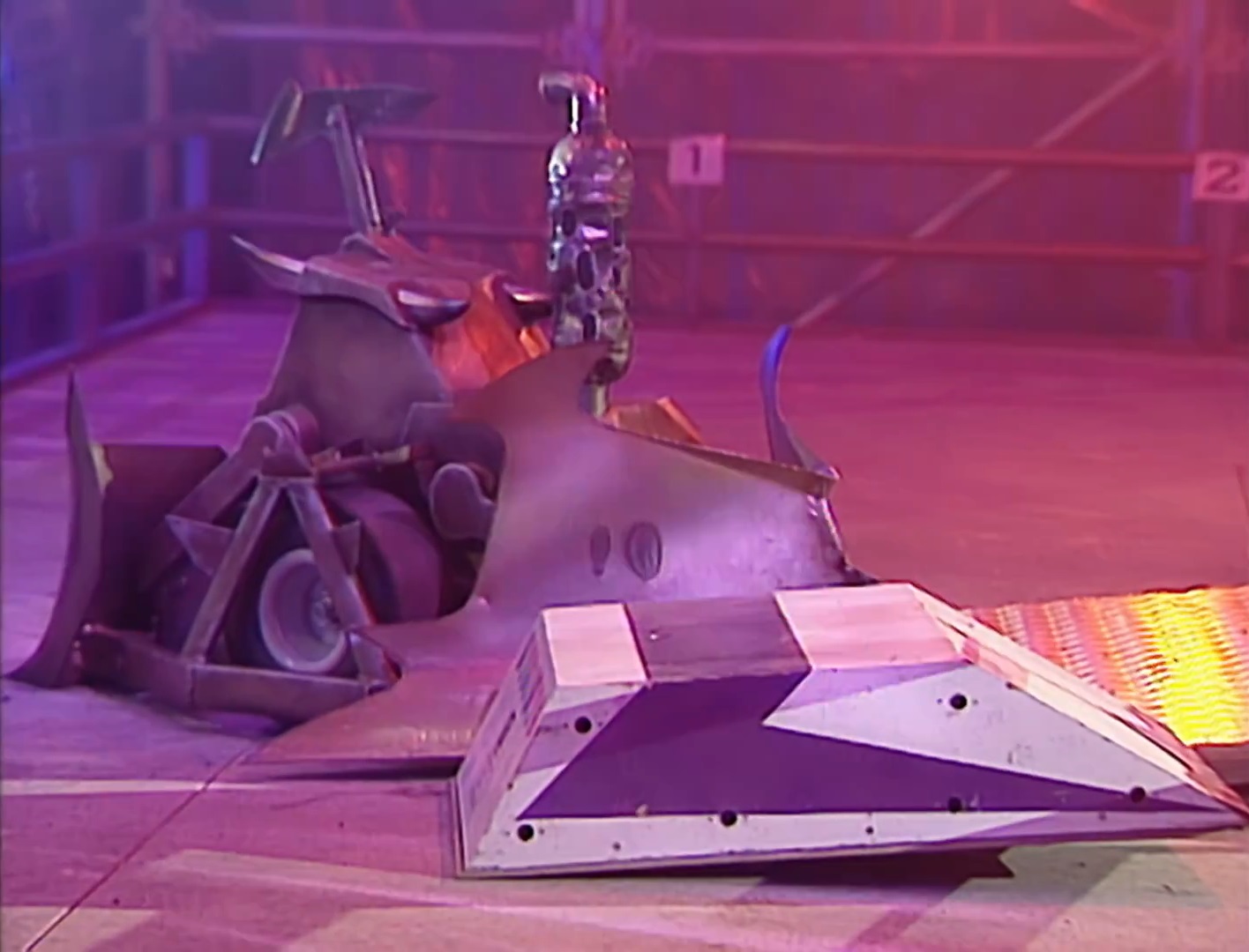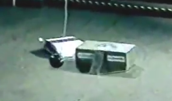 WYSIWYG, moments after being flipped over by The X-2 in its Featherweight Melee