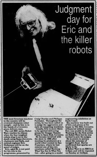 - "His machine was built out of bits and pieces from his house in Tile Hill, Coventry. A financial setback meant that Eric was unable to develop Wysiwyg [sic] for the first series on Robot Wars but he was invited to join the Judges."